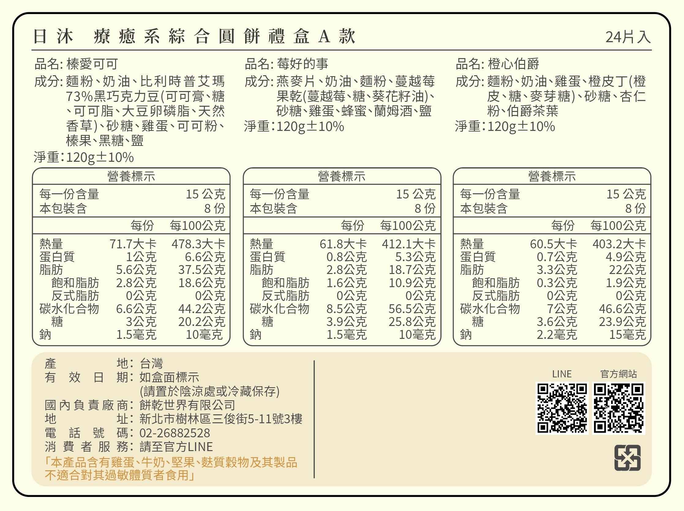 • 葷素:蛋奶素(果乾內含微量酒精)
