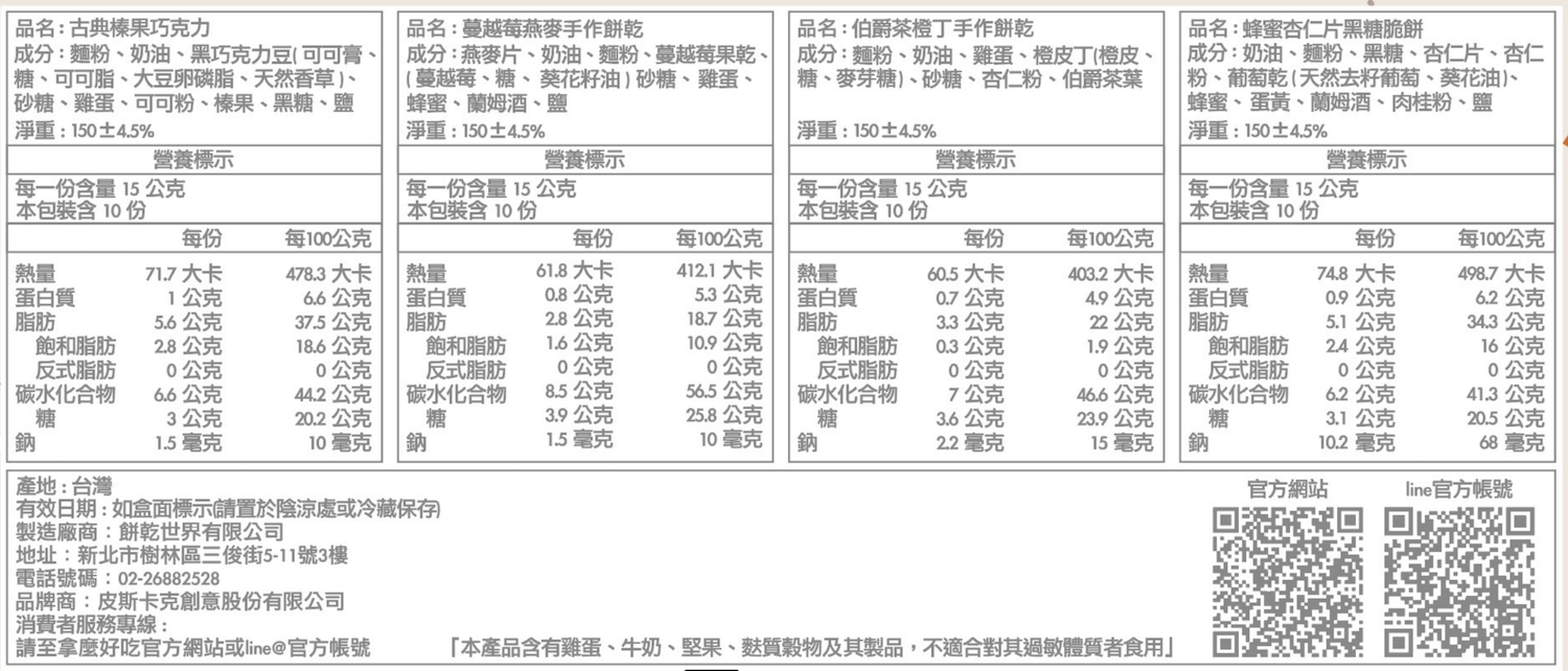 *餅乾為手工製作,且無添加化學穩定劑成份,因此每批的形狀、厚薄、口感可能會有些微不同,能接受,再下單,感謝。