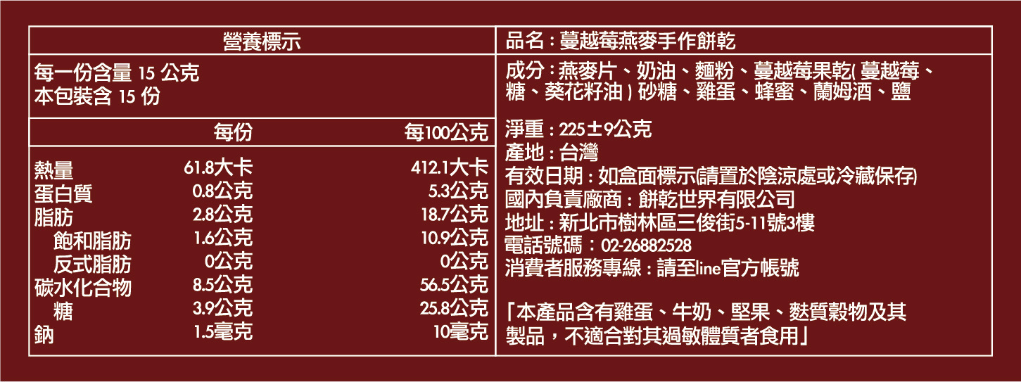 *餅乾為手工製作,且無添加化學穩定劑成份,因此每批的形狀、厚薄、口感可能會有些微不同,能接受,再下單,感謝。