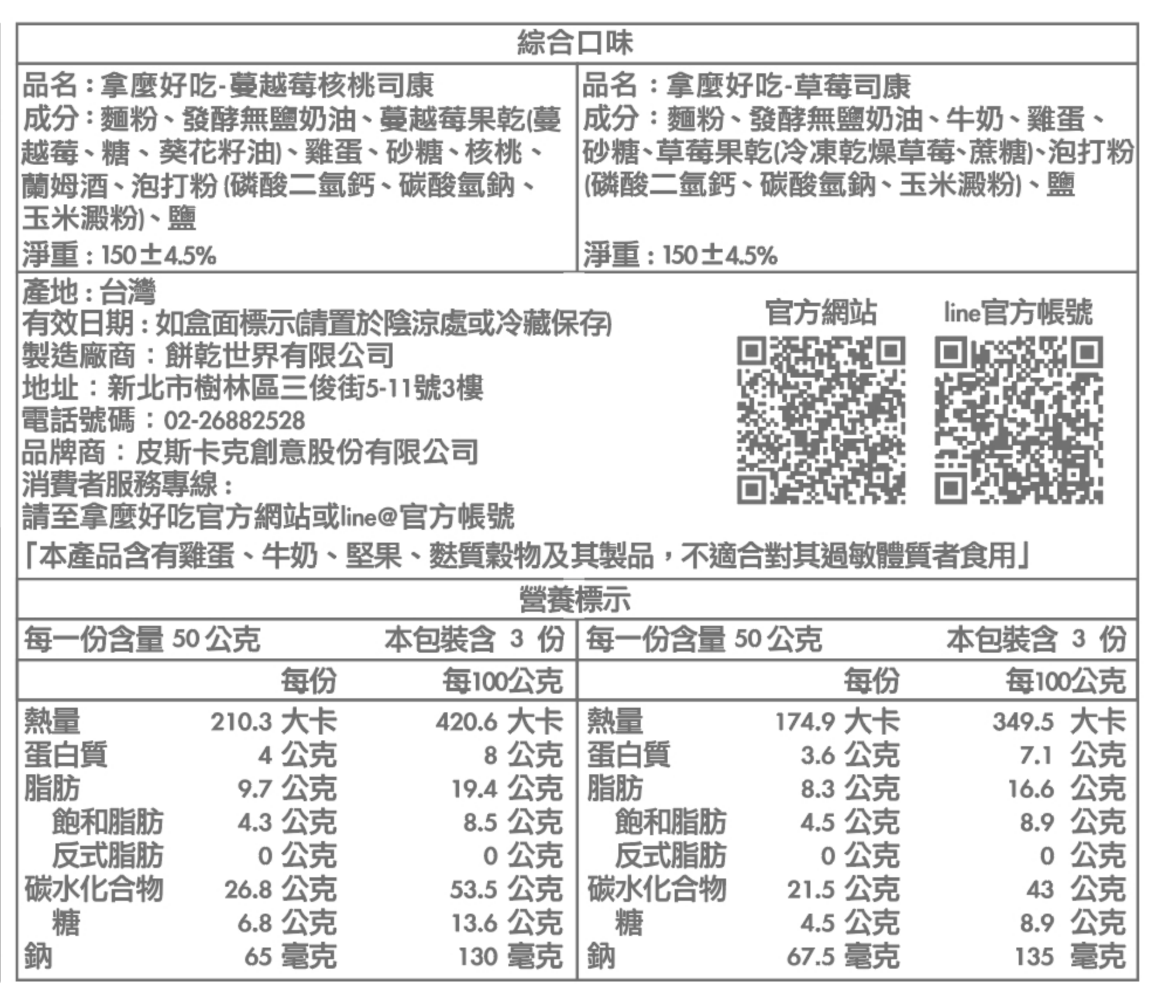 *司康為手工製作,且無添加額外化學穩定劑成份,因此每批的形狀、厚薄、口感可能會有些微不同,能接受,再下單,感謝。